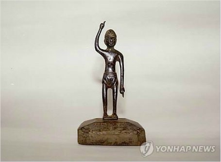 작년 11월 일본 나가사키(長崎)현 쓰시마(對馬)시 미쓰시마 초(美津島町) 소재 바이린지(梅林寺)에서 한국인 절도범들이 훔친 높이 11cm의 구리 불상 '탄생불.9세기 신라시대의 것으로 추정된다.