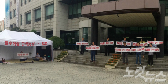 부산대교수회가 대학측의 총장 간선제 추진에 반발해 단식농성을 벌이고 있다.(사진=부산대교수회)