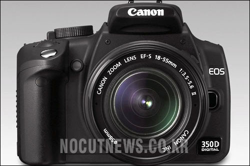 캐논 ''EOS 350D''는 2004년 히트 디카인 600만 화소 EOS 300D의 후속모델로 기존 전문가용 카메라인 EOS 20D와 EOS 1D Mark II의 상위 기능을 채용하면서도 18~55mm 렌즈 킷트를 포함해 120만원대에 출시돼 디카 애호가들의 관심을 끌고 있다.