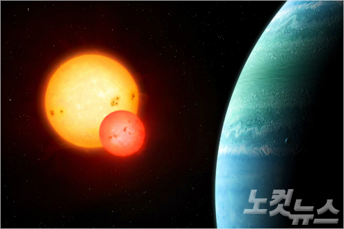 두 별로 이루어진 쌍성(사진 왼쪽) 주위를 공전하는 외계행성(오른쪽)계 'Kepler-453'의 상상도.(미국 샌디에이고주립대학교 제공)