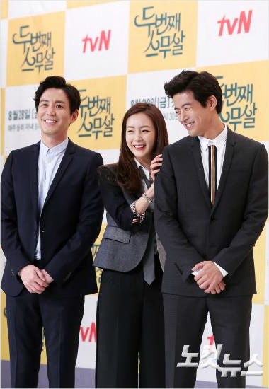 (왼쪽부터)배우 최원영, 최지우, 이상윤이 25일 서울 영등포구 타임스퀘어 아모리스홀에서 열린 tvN 금토드라마 '두번째 스무살' 제작발표회에서 포즈를 취하고 있다. 사진=윤성호 기자