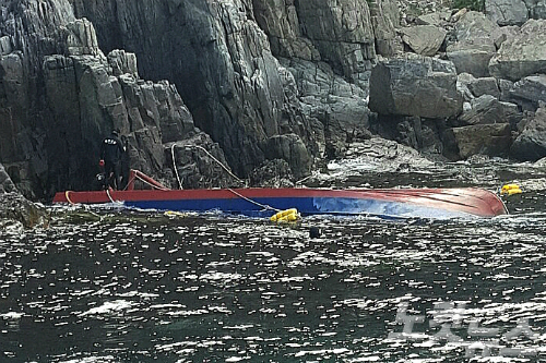 전복된 돌고래호 인양은 10일쯤이나 가능할 것으로 보인다. (사진=제주해경 제공)