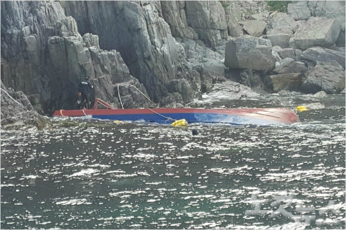 한편, 전남 해남선적 9.77톤급 낚시어선 돌고래호는 지난 5일 저녁 해남으로 되돌아가기 위해 추자도를 출항했다가 전복됐다. 11시간만인 6일 오전 6시 25분쯤 추자도 섬생이섬 남쪽 1.1km 해상에서 발견됐다.