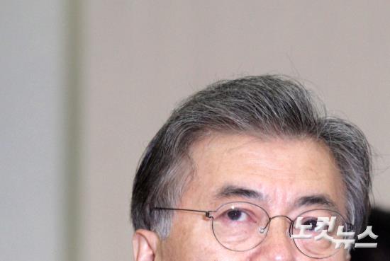 새정치민주연합 문재인 대표가 11일 서울 용산구 합동참모본부에서 열린 국회 국방위원회의 합참 국정감사에 참석, 생각에 잠겨 있다. 문 대표는 이날 오전 당의 비공개 확대간부회의에서 당원과 국민에게 재신임을 묻고 어느 한쪽에서라도 불신임을 받으면 대표직에서 물러나기로 결정했다.