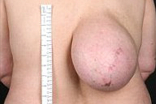 11일 영국 언론매체에 따르면 46살된 영국 여성의 등에 '가슴'크기만한 종양이 자라났다.