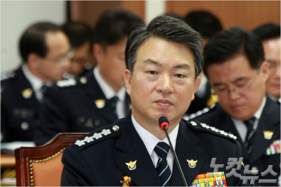 강신명 경찰청장이 14일 오전 서울 서대문구 통일로 경찰청에서 열린 국회 안전행정위원회의 경찰청 등에 대한 국정감사에서 의원들의 질의를 듣고 있다. (사진=박종민 기자)