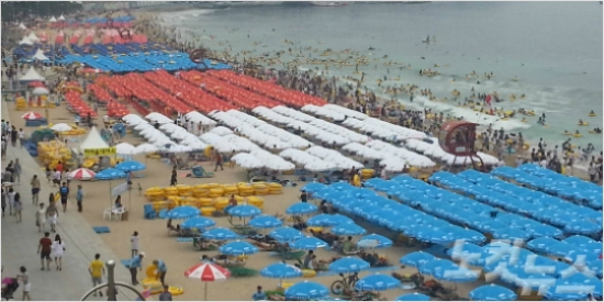해수면이 1m 상승하면 부산지역 7개 해수욕장 전체와 부산신항, 녹산산업단지 등이 물에 잠기는 것으로 나타났다.