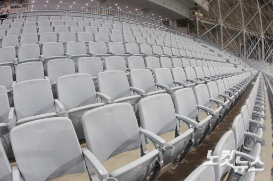 국내 최초 돔야구장 '고척스카이돔'이 09년 2월 첫 삽을 뜬 지 약 7년 만에 완공, 한국야구 돔구장 시대가 본격 개막했다. 사진은 15일 서울 구로구 국내 최초 돔야구장 '고척스카이돔'의 미디어데이 행사에서 공개된 객석. 고척돔은 내년부터 넥센히어로즈가 홈구장으로 사용할 예정이다.