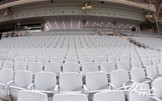 국내 최초 돔야구장 '고척스카이돔'이 09년 2월 첫 삽을 뜬 지 약 7년 만에 완공, 한국야구 돔구장 시대가 본격 개막했다. 사진은 15일 서울 구로구 국내 최초 돔야구장 '고척스카이돔'의 미디어데이 행사에서 공개된 객석. 고척돔은 내년부터 넥센히어로즈가 홈구장으로 사용할 예정이다.