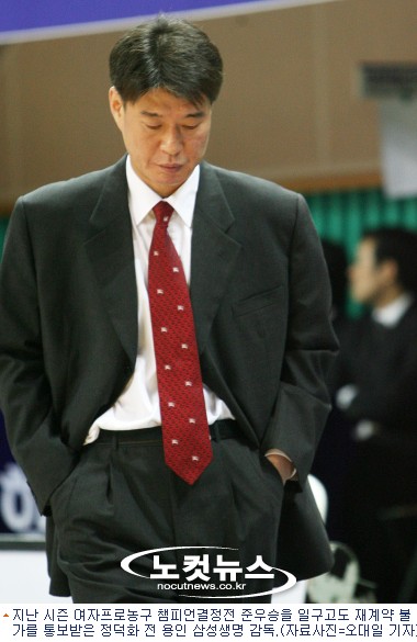 정감독은 지난 시즌 안산 신한은행과 챔피언결정전 때만 해도 재계약 쪽에 무게가 기우는 듯했다. 챔프전에서 패하긴 했어도 상대가 워낙 강했던 데다 지난 2004년 부임 이후 챔피언전 우승 1회, 준우승 2회 등 짭짤한 성적을 거뒀기 때문이다. 당시 구단 관계자들도 그 무렵 떠돌던 정감독 재계약 불가설을 "무슨 소리냐"며 일축하기도 했다.