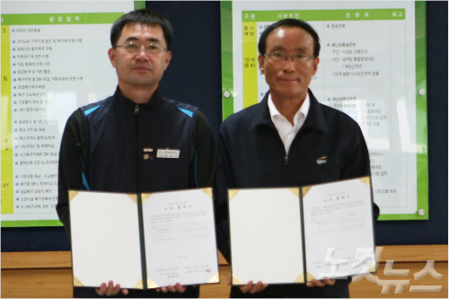차준일 대전도시철도공사 사장과 한성수 노조위원장 등 노사 대표는 23일 오후 임금피크제 적용대상자(연령)와 임금 감액률을 명시한 '임금피크제 도입 관련 노사 합의서'에 서명했다고 24일 밝혔다.