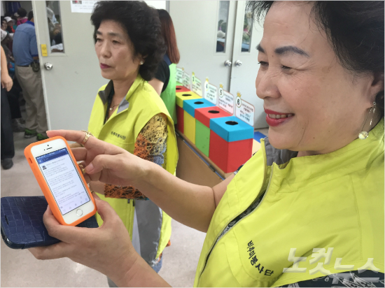 군포 노인복지회관 회원 박경자(65,여)씨가 SNS에 올린 글을 보여주고 있다. (사진=조혜령 기자)
