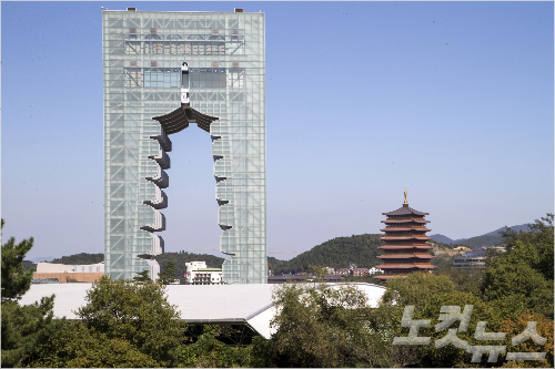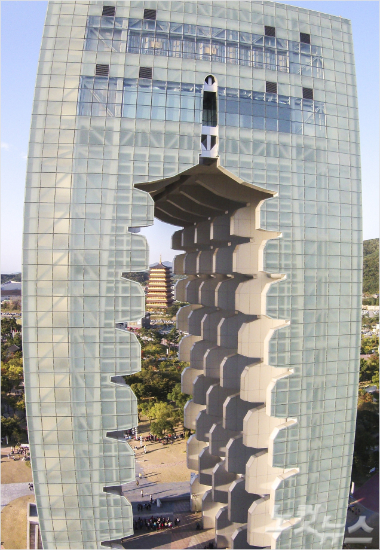 경주엑스포공원을 상징하는 경주타워가 시집을 간다. 신랑은 경주타워와 마주보고 있는 출중한 외모의 중도타워다.
