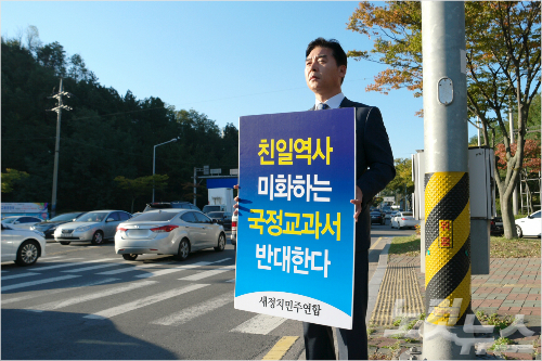새정치민주연합 오중기(사진) 경북도당위원장은 13일부터 포항시 북구 우현사거리에서 '역사 교과서 국정화 반대' 1인시위를 갖는다고 밝혔다.