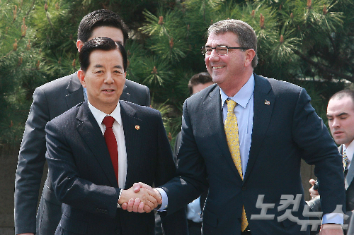한민구 국방장관과 애슈턴 카터 미국 국방장관 (사진=황진환 기자/자료사진)