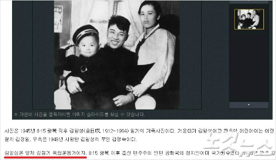 이 사이트는 김일성을 독립운동가로 소개하면서 보천보 전투 등 항일투쟁 행적을 연도별로 소상히 소개하고 있습니다.