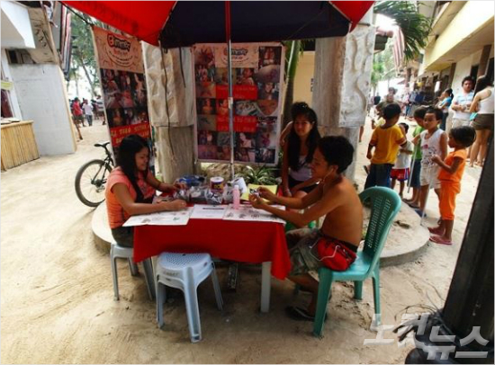 ◇ 헤나, 레게머리 등 보라카이스럽게점심은 조나스에서 푸짐한 세트메뉴와 엄청난 크기의 망고 쉐이크를 맛보자. 조나스는 보라카이의 명물이라고 할 만큼 유명한 맛집이다. 허름해 보이는 외관과 달리 환상의 맛을 만들어낸다. 식사를 마친 후 다시 화이트비치로 돌아와 비치로드를 거닐어 보자. 비치로드를 거닐다 나타나는 아기자기한 예쁜 가게들, 해변에서 쓸 수 있는 멋들어진 모자와 섹시한 디자인의 수영복.
