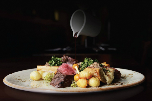 서귀포 문섬이 내려다 보이는 200석의 넓은 공간에 제주 녹차로 숙성한 LA 갈비를 비롯해 제주보리맥주로 제운 삼겹살구이, 모슬포 양배추와 우도 땅콩 들깨 연근, 등심 바비큐 그릴 구이 등 다양한 메뉴를 저렴하게 선보인다.