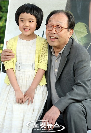 [BestNocut_R]15일 오후 충무로 대한극장에서 열린 영화 ''방울 토마토'' 기자시사회에서 영화 속 친할아버지와 친손녀로 출연하는 김향기양이 포즈를 취하고 있다.