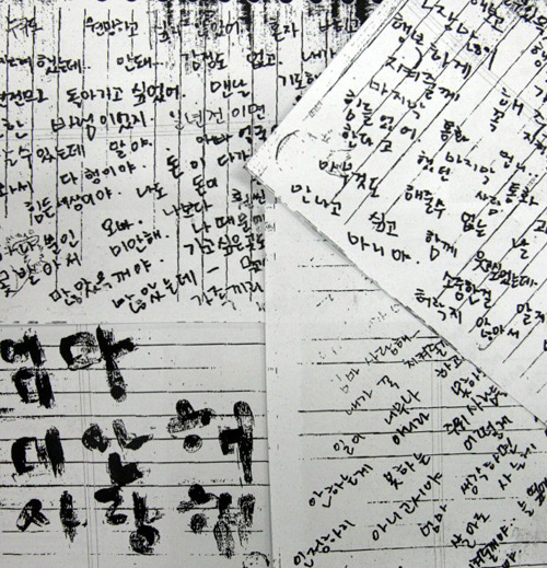왼쪽 아래 '엄마, 미안해.사랑해'라는 혈서와 함께 3장의 유서(연합뉴스)
