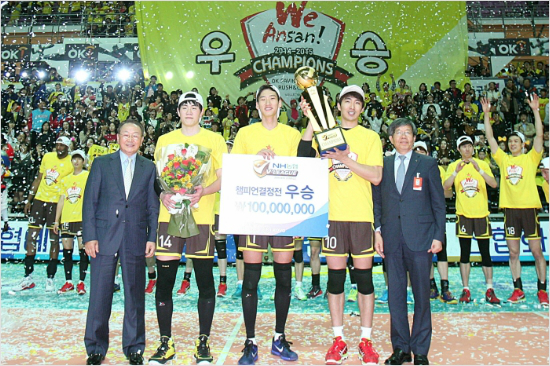 그런 OK저축은행은 최강 삼성화재를 넘어 V리그 우승을 차지하는 기적을 연출했다. 여기에 세월호 사건으로 슬퍼하던 안산을 위로하는 행사를 여는 등 적극적인 연고지 밀착 활동으로 흥행에도 성공했다.
