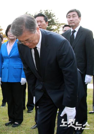 문재인 새정치민주연합 대표가 26일 서울 용산구 효창공원 삼의사 묘역 백범 김구 선생 묘역에서 참배하고 있다.