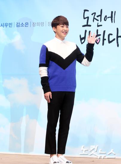 아이돌 그룹 엑소(EXO)의 시우민이 26일 오후 서울 서초동 삼성전자 사옥에서 열린 삼성 웹드라마 ‘도전에 반하다’ 쇼케이스에 참석해 포즈를 취하고 있다.