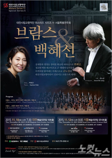 이번 공연에는 대전시향의 예술감독인 금노상의 지휘로 섬세한 열정을 겸비한 최고의 피아니스트 백혜선이 함께하며, 브람스의 '피아노 협주곡 제2번 내림나장조, 작품 83'과 '교향곡 제4번 마단조, 작품 98'을 선보인다.