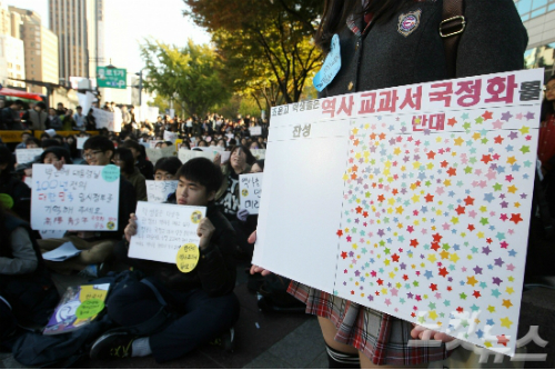 국정화에 반대하는 466개 교육·시민단체로 구성된 '한국사교과서 국정화저지네트워크'는 지난달 31일 오후 서울 청계광장에서 '역사교과서 국정화 저지를 위한 범국민 대회'를 열었습니다.