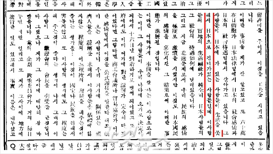 1961년 당시 양원제 국회 중 상원 격인 참의회 본회의 회의록. 오른쪽에서 다섯번째 줄부터 "그 사람들이 일본에 가 있는 사람들이 생활을 못해서 일본에 가 있는 사람들인데…" 라는 표현이 확인된다. (자료=국회 사무처)