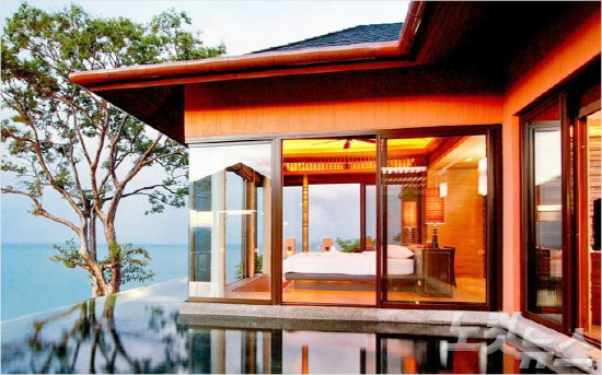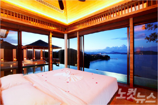 푸껫(푸켓) 허니문을 준비 중이라면 스리판와 리조트의 오션뷰를 놓치지 말자. 침대가 위치한 객실 삼면이 통유리로 되어 있기 때문에 180도 파노라마로 푸껫의 바다를 감상할 수 있다. 침실 바로 앞에는 프라이빗 풀이 마련돼 있어 풀장이나 선 데크에서도 여유롭게 오션 뷰를 감상할 수 있는 것이 특징이다.