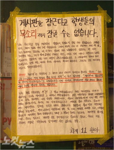 대자보 검열…세월호 사태 때는 대자보 강제철거 하기도