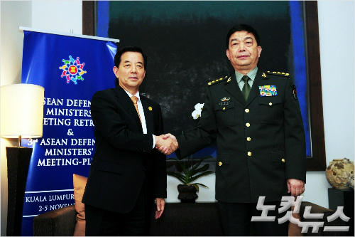 = 한민구 장관과 창완취안 중국 국방부장이 아세안 국방장관회의에 참석한 김에 별도 한중 국방장관 회담을 가졌습니다.