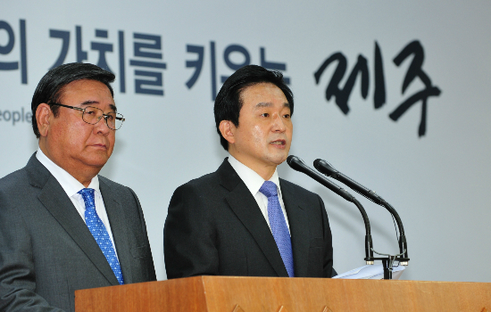 원희룡 제주도지사와 구성지 제주도의회 의장(사진왼쪽)