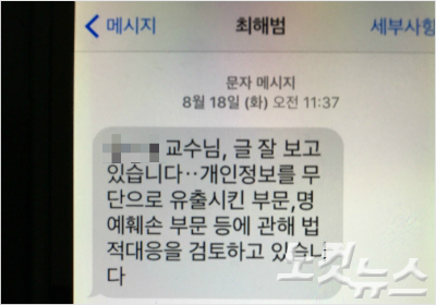 ◆황석만 : 개인적으로 한 편으로는 보기에 따라서는 매우 위협으로 느낄 수 있는 그런 법적인 조치를 취하겠다. 이런 문자를 받은 선생님도 있구요.