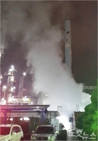 16일 오전 0시47분쯤 울산시 남구 부곡동 이수화학 울산공장에서 불산이 누출됐다. (사진=울산시소방본부 제공)