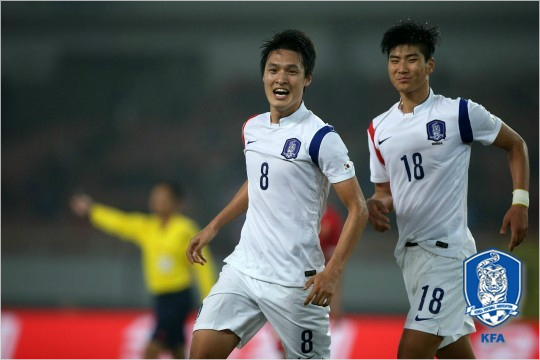 K리그 클래식 FC서울의 신인 미드필더 박용우(등 번호 8번)는 중국 4개국 친선대회에 대체선수로 출전해 2경기에 출전해 2골을 넣는 맹활약으로 신태용 올림픽 축구대표팀 감독의 확실한 눈도장을 찍었다.(자료사진=대한축구협회)