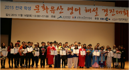 문화재청은 국제교류문화진흥원(원장 유정희)과 공동으로 주최하고, 지난 14일 시행한 '2015 전국 학생 문화유산 영어해설 경진대회' 결과를 발표하였다.