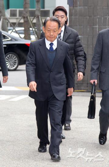 해상작전헬기 '와일드캣(AW-159) 도입 비리에 연루된 의혹을 받는 최윤희(62) 전 합참의장이 24일 오전 피의자 신분으로 서울 서초구 서울중앙지검 별관 방위사업비리 정부합동수사단에 소환되고 있다.