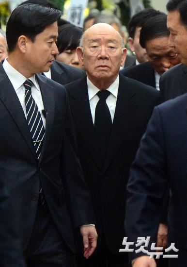 전두환 전 대통령이 25일 오후 서울대학교병원 장례식장에서 고 김영삼 전 대통령의 빈소를 찾아 조문한 뒤 차량으로 향하고 있다.