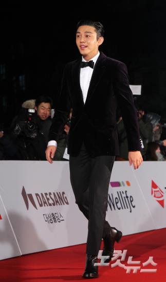 배우 유아인이 26일 저녁 서울 경희대학교 평화의 전당에서 열린 제36회 청룡영화상 시상식에서 레드카펫을 밟고 있다.