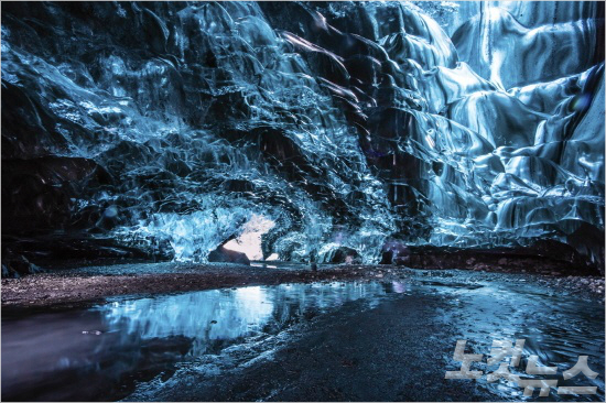 우리나라에 선풍적인 인기를 끓었던 애니메이션 영화 '겨울왕국'의 모티브가 된 에메랄드 빛 얼음동굴은 용암으로 데워진 300도의 뜨거운 해수가 바다 밑에서 분출 되어 빙하를 녹이며 형성됐다. 총 면적 8,099km, 깊이 1km에 달하는 이 푸른 동굴은 아이슬란드 국토의 8%에 해당할 정도로 거대하다.