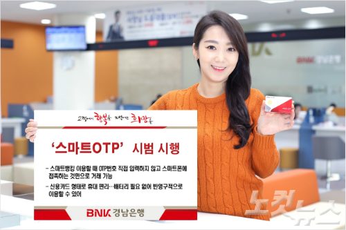 BNK금융그룹 경남은행은 전자금융 이용 고객들의 편의와 보안 강화를 위해 27일부터 '스마트OTP'를 시범 시행하고 있다.
