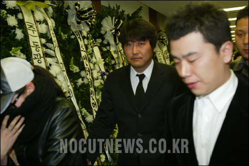 23일 오후 5시 50분경 분당 서울대 병원에 위치한 고인의 빈소를 찾은 송강호는 3시간동안 빈소를 지키다가 9시 30분경에야 뒤이어 온 영화배우 문소리와 함께 빈소를 나섰다.