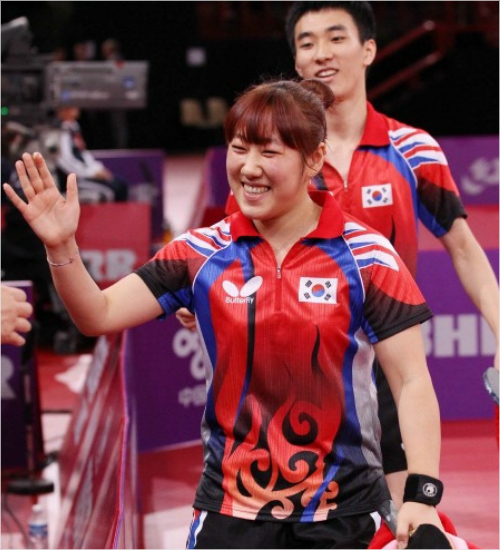 '이 미소 다시 찾아야지' 박영숙이 이상수와 함께 출전해 혼합복식 준우승을 차지했던 2013년 파리 세계선수권대회 당시 모습.(자료사진=월간 탁구)
