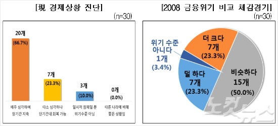 향후 중국과의 경쟁에 대해 응답단체 91.7%가 부정적으로 내다봤고 일본과의 경쟁력 전망에서도 65%가 악화를 예상하는 등 우리나라 산업계는 위기감이 매우 고조되는 것으로 나타났다.