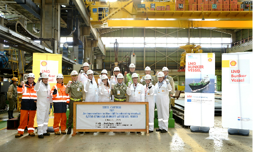 STX조선해양은 7일 "지난 4일 진해조선소에서 선주 측의 '로열 더치 셸'(Royal Dutch Shell), 선급인 LR과 회사 관계자들이 참석한 가운데 6,500㎥급 LNG벙커링선(LNG Bunker Vessel)의 착공식(steel cutting)을 가졌다"고 밝혔다.