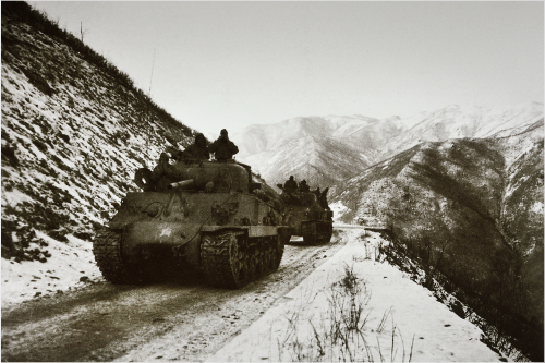 장진호 전투_눈보라 속에 후퇴하고 있는 유엔군