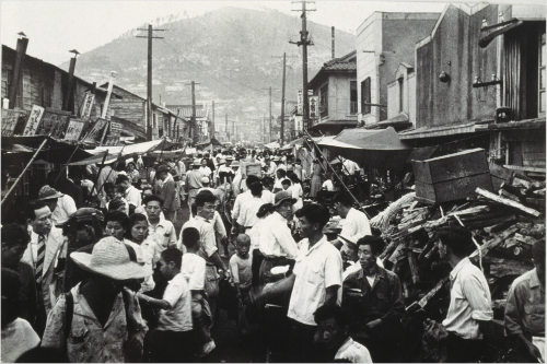 피난민들로 북새통을 이루고 있는 부산 국제시장