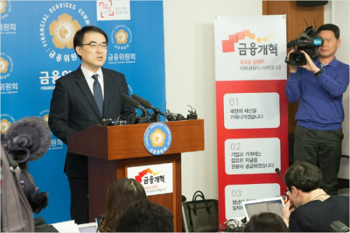 금융위원회 손병두 금융정책국장이 14일 '가계부채 관리방향 및 은행권 주택담보대출 심사 선진화 가이드라인'을 발표하고 있다(사진=금융위원회 제공)